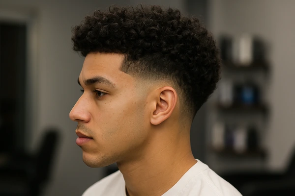 A high taper fade is a haircut that shortens the hair from top to bottom in a smooth gradient, tapering into the side rims and nape. For curly hair, it balances volume, shape, and definition — letting curls stand out while sides stay clean.